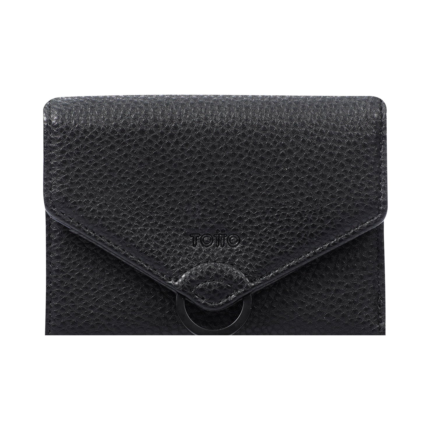 ¡Lleva organización y seguridad en cada salida! La billetera para mujer Soft Ney negra, de tamaño pequeño y dos cuerpos, incluye RFID Blocker para mayor protección evitando clonaciones de tu información, cierre en broche, bolsillo para monedas y compartimentos para billetes y tarjetas. Su exterior en material texturizado tipo cuero y forro en poliéster te ofrecen resistencia. El logo Totto repujado añade un detalle distintivo. ¡Pídela ya y disfruta practicidad todos los días!