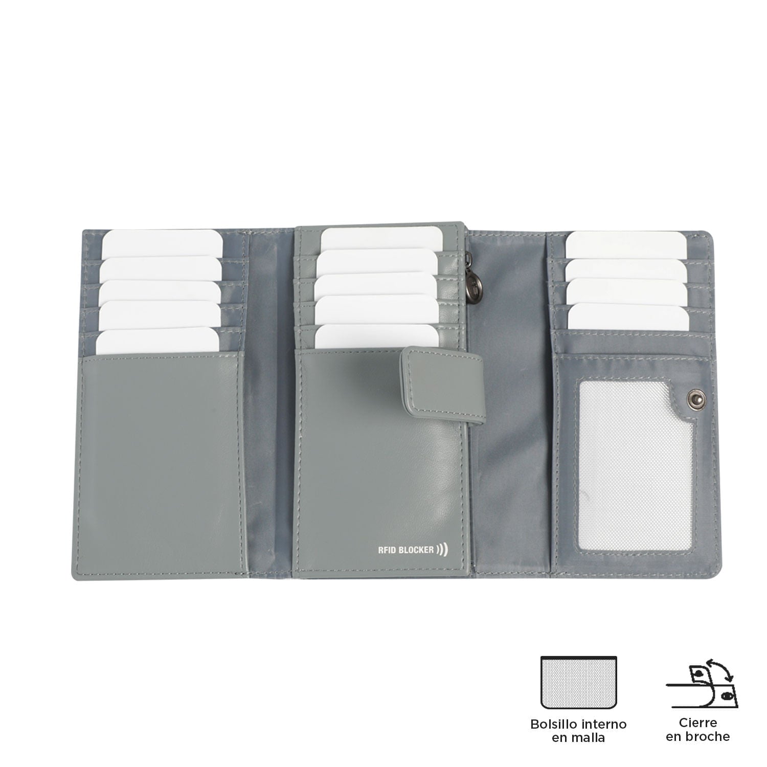 ¡Disfruta de practicidad y seguridad con la billetera Style Don! Diseñada con tres cuerpos, cuenta con bolsillo para monedas, organizadores para tarjetas y billetes, y un bolsillo interno en malla. Su cierre en broche y manija removible brindan comodidad en cualquier ocasión. Fabricada en materiales de calidad, combina una apariencia sofisticada con ligereza y un tacto agradable. Además, su sistema RFID Blocker protege tus datos. ¡Hazla tuya hoy mismo!