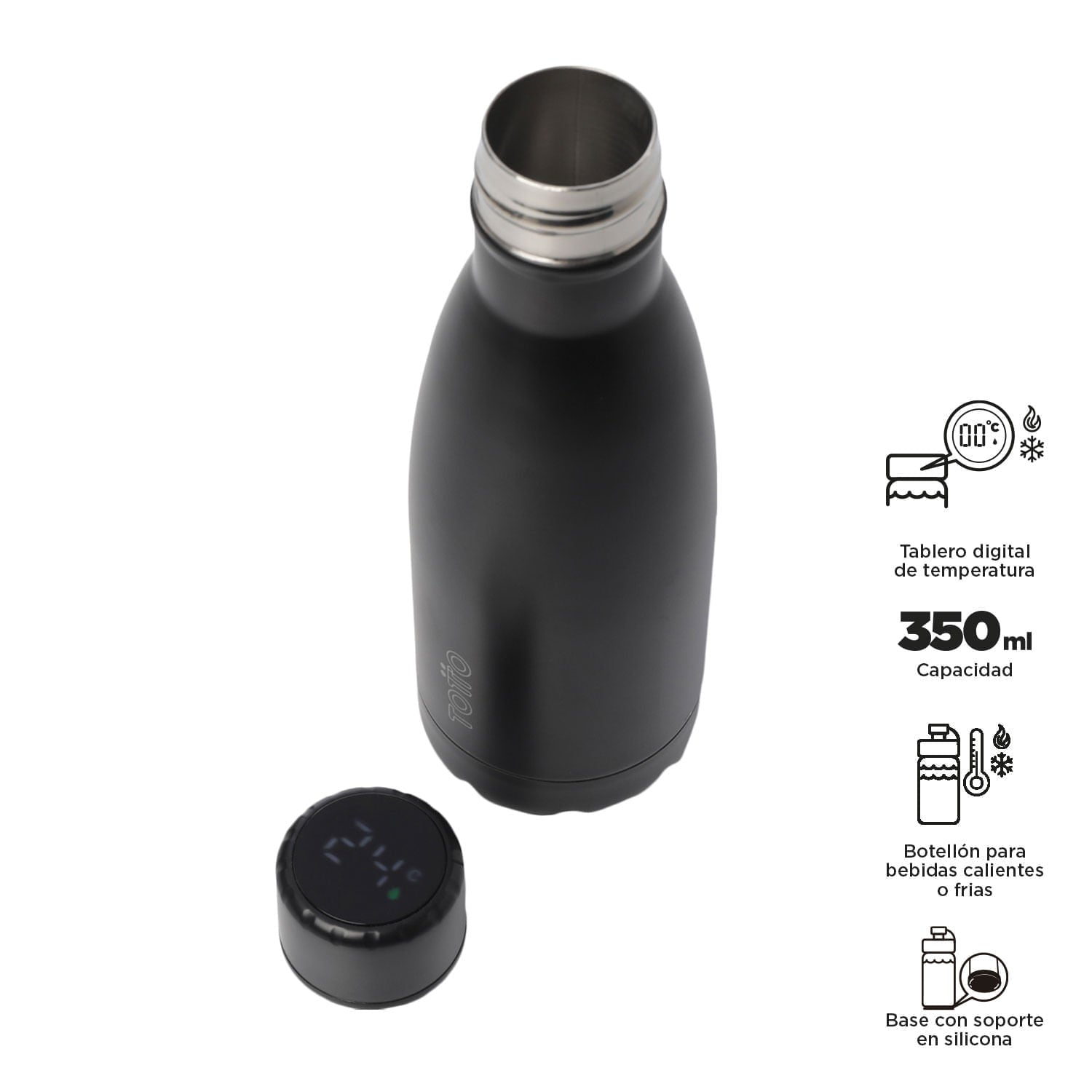 ¡Controla la temperatura de tu bebida con el botilito metálico Scan 350 ml! Su diseño en acero inoxidable con doble pared mantiene el frío y el calor por mucho tiempo. Incluye un tablero digital que te permite monitorear la temperatura en todo momento y una base de silicona para mayor estabilidad. Ideal para la oficina, gimnasio o cualquier actividad. ¡No te quedes sin el tuyo y agrégalo a tu día!
