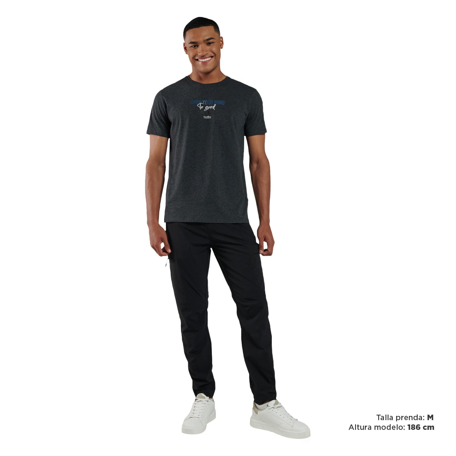 Refina tu estilo con la Camiseta Gris cuello redondo para hombre. Su diseño estampado y manga corta no solo proporcionan comodidad y frescura, sino que también infunden una dosis de carácter a cualquier atuendo. Además, el cuello redondo asegura un ajuste clásico y cómodo, completando así un look que destaca por su elegancia y versatilidad.