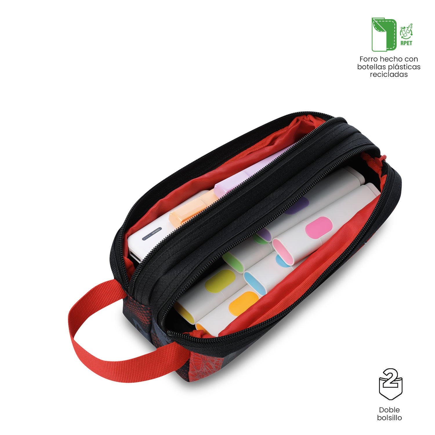 Cartuchera Escolar Grande para Niño 2 Cuerpos Spiderman Hero Negra