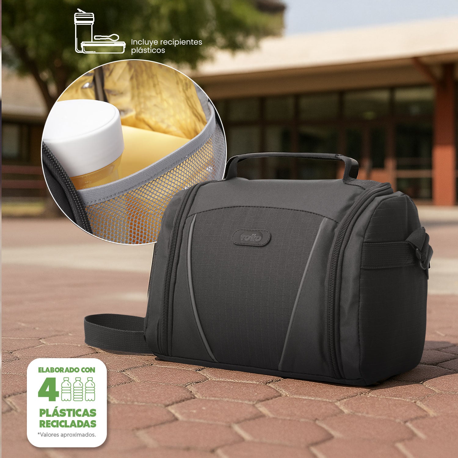¡Mantén tus alimentos frescos con la lonchera Devry 2.0! Su aislamiento térmico conserva la temperatura hasta por 5 horas, y su diseño incluye un bolsillo interno con cremallera, detalle reflectivo y pasador para sistema de ruedas. Elaborada con materiales reciclados RPET, es repelente a líquidos y fácil de limpiar. La correa ajustable garantiza comodidad al transportarla. ¡Llévala contigo ahora y disfruta de su funcionalidad!