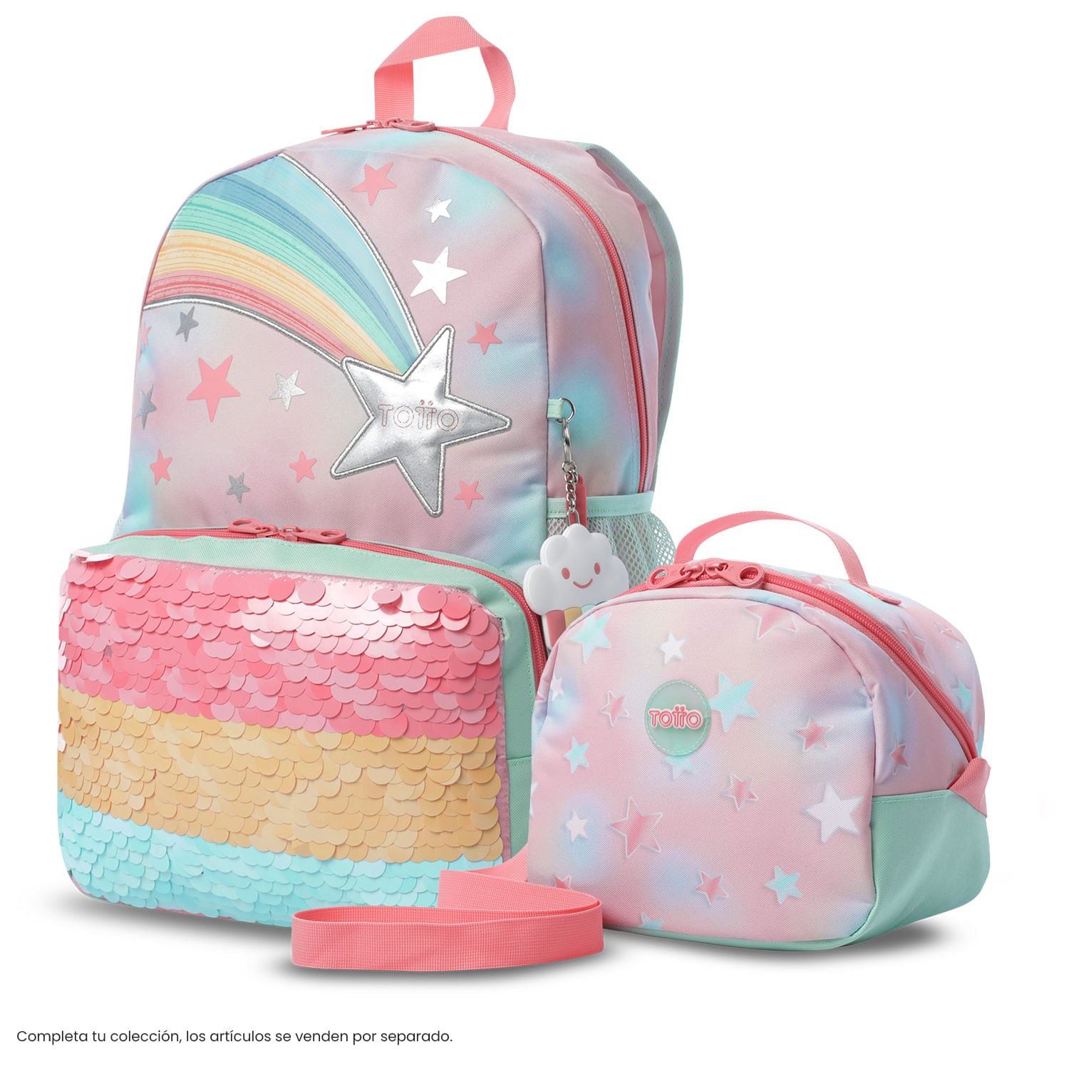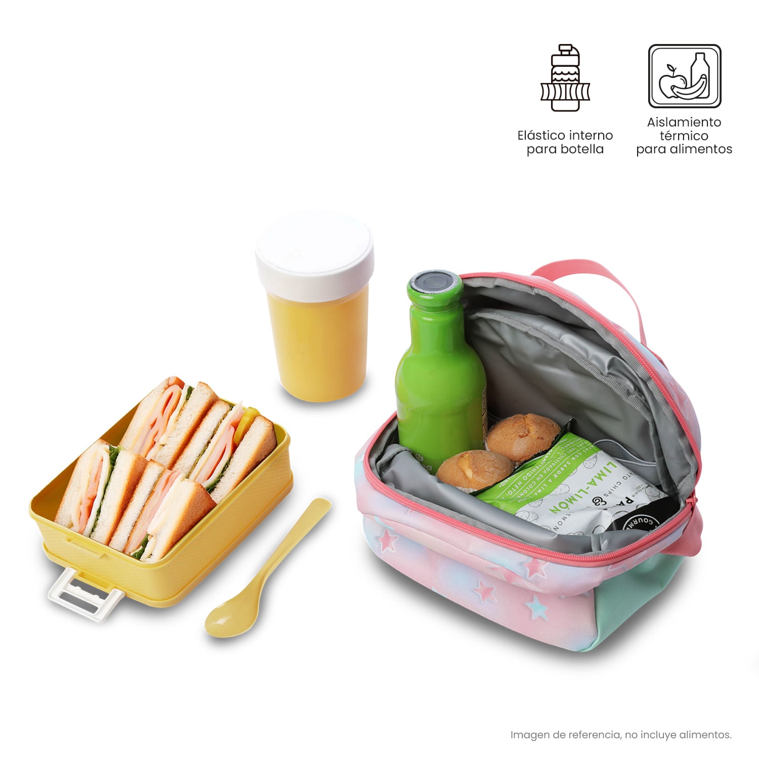 ¡Haz que cada jornada escolar sea más cómoda con la lonchera Rainbow Star! Su compartimento amplio con cierre de doble cremallera protege los alimentos, mientras la reata ajustable permite llevarla al hombro o cruzada. La banda trasera facilita anclarla al morral de ruedas, su estampado posterior permite marcarla fácilmente y un portacomidas perfecto para tus alimentos.