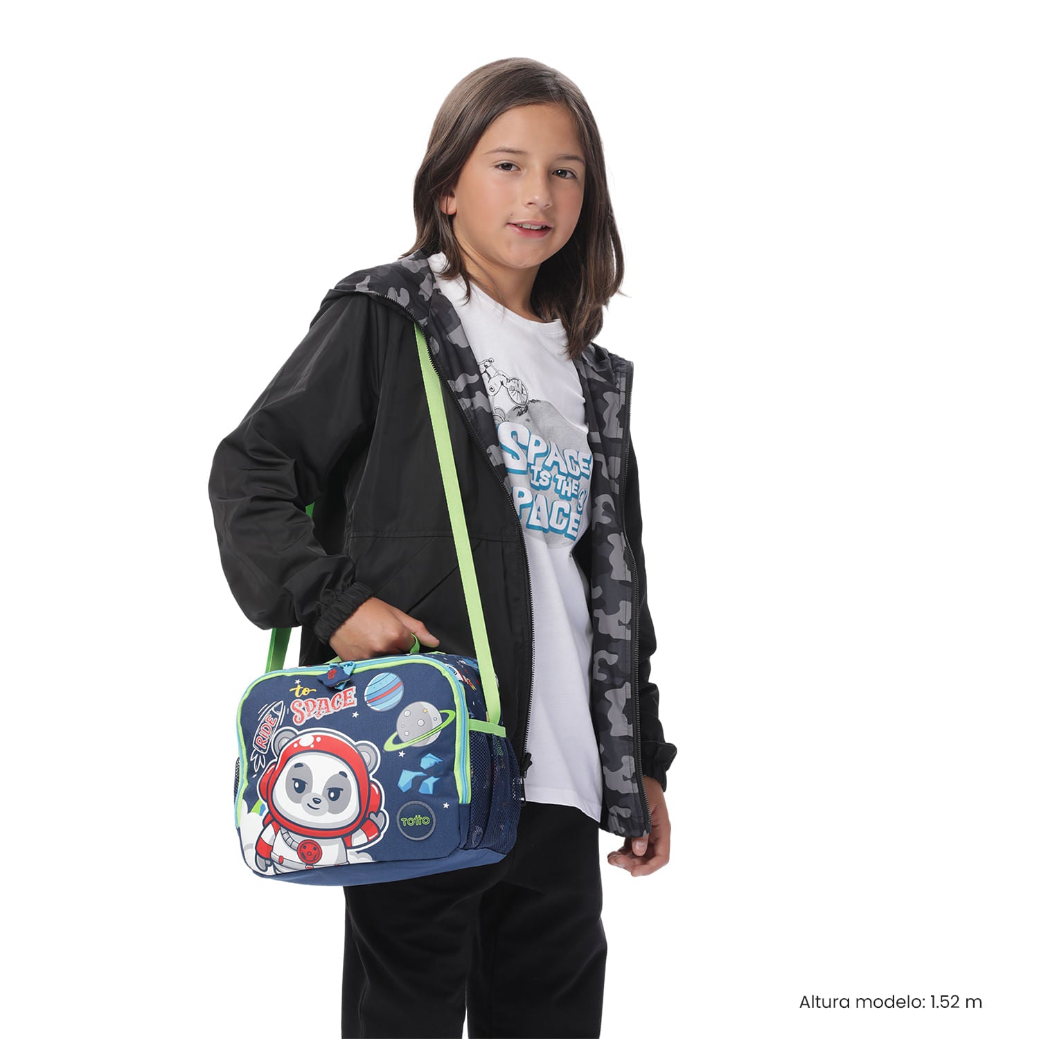 ¡Mantén sus alimentos frescos y organizados con la lonchera Panda Space! Su aislamiento térmico protege la comida, mientras el compartimento principal con cierre doble guarda todo de forma segura. La reata ajustable permite llevarla al hombro o cruzada, y la banda trasera asegura fijarla al morral de ruedas. Incluye espacio para personalizar con su nombre y un portacomidas perfecto para tus alimentos. ¡Cómprala hoy mismo!