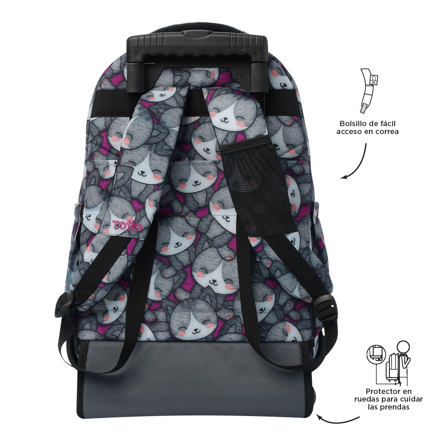 Morral con Ruedas Niña Porta PC 15.4" Renglones Gris