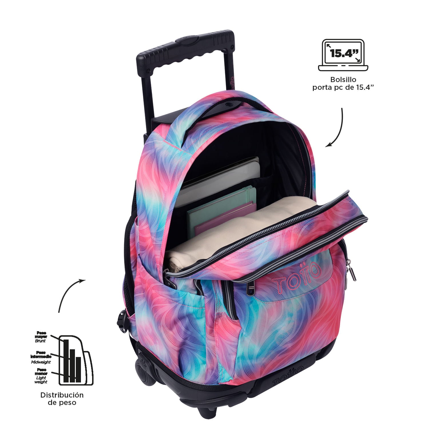 Morral con Ruedas para Niña Porta PC 15.4" Renglones Glitter Rosado