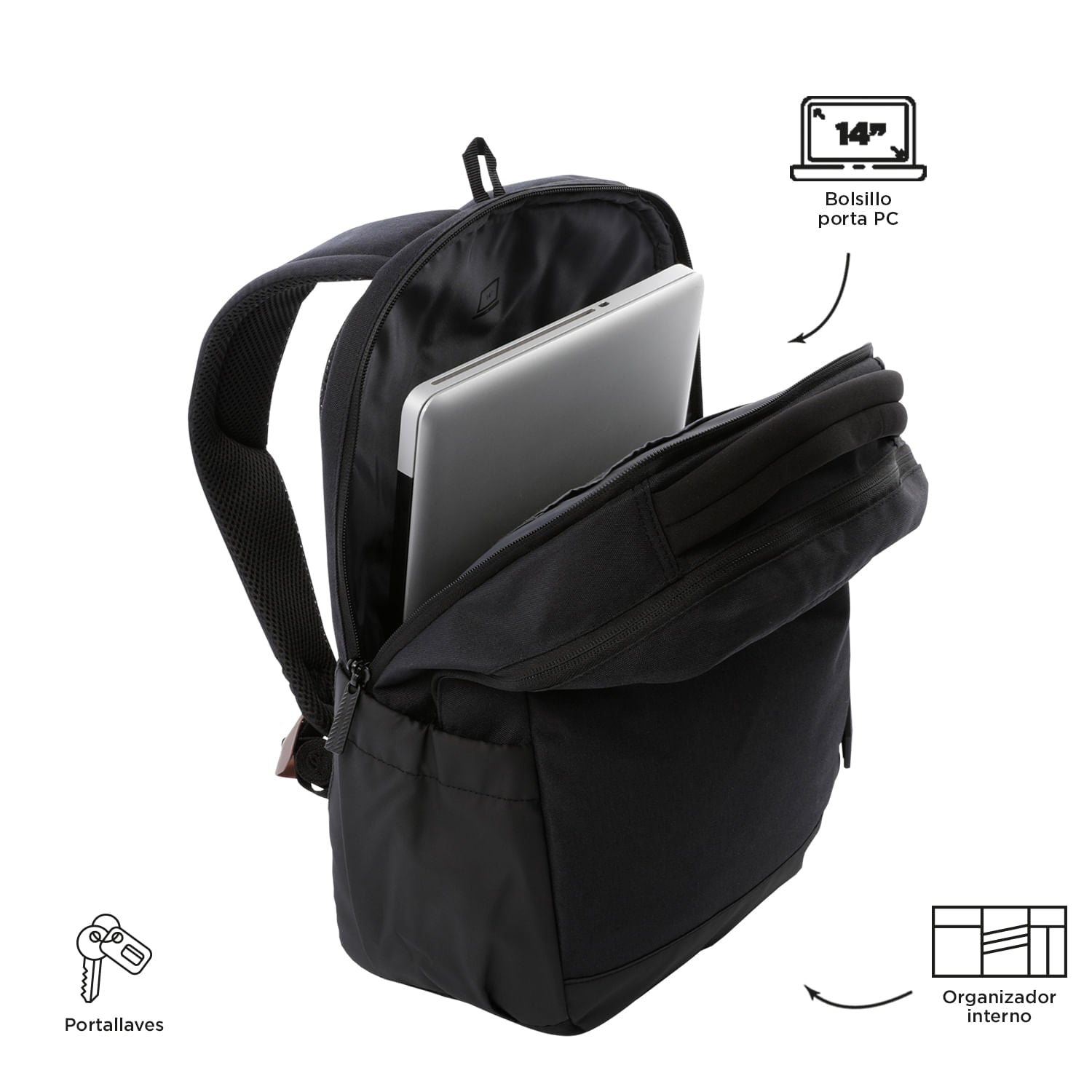 ¡Organiza tu día a día con el morral Deleg 2.0! Perfecto para la oficina, con un compartimiento para PC de 14" y un bolsillo para tableta de 10", está fabricado en lona resistente a la abrasión e incluye organizador interno, portallaves, argollas para candado en cremallera y pasador para sistema de ruedas. También cuenta con un bolsillo para botella, correas en forma de S y posterior acolchado para mayor comodidad.