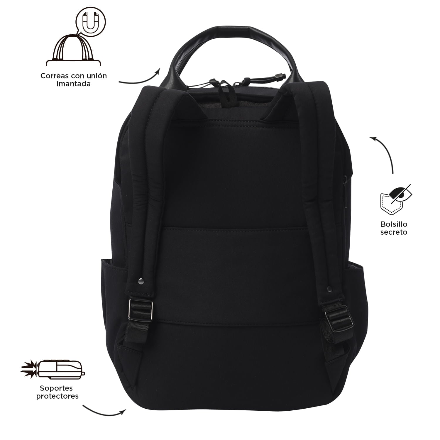El morral Toscana combina estilo y practicidad para mujeres que buscan un accesorio funcional y sofisticado. Este modelo mediano incluye un bolsillo porta PC de 14", bolsillo secreto, bolsillo interno plano y espacio para botella. Su diseño cuenta con un cierre imantado y pasador para sistema de ruedas. Fabricado con materiales de calidad ofrece resistencia. ¡Llévalo contigo al trabajo o a la universidad!