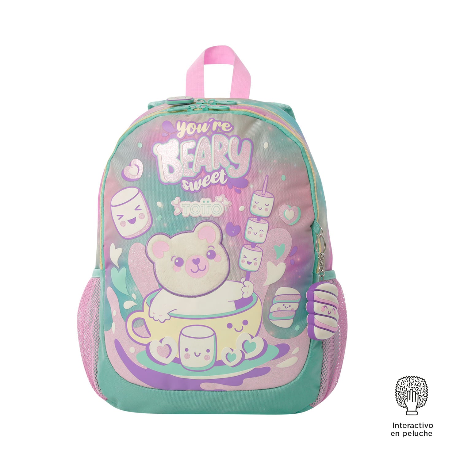 ¡Dale un toque especial a los días con el morral para niña Mellow! Esta maleta para el colegio cuenta con un compartimento principal con cierre de doble cremallera, bolsillos laterales portabotellas y un bolsillo frontal con organizador. Confeccionado en poliéster, ofrece correas acolchadas y una manija superior en reata. Su diseño colorido con un tierno peluche en el frente y el llavero en goma en forma de malvavisco lo hacen único. ¡Llévalo ya!