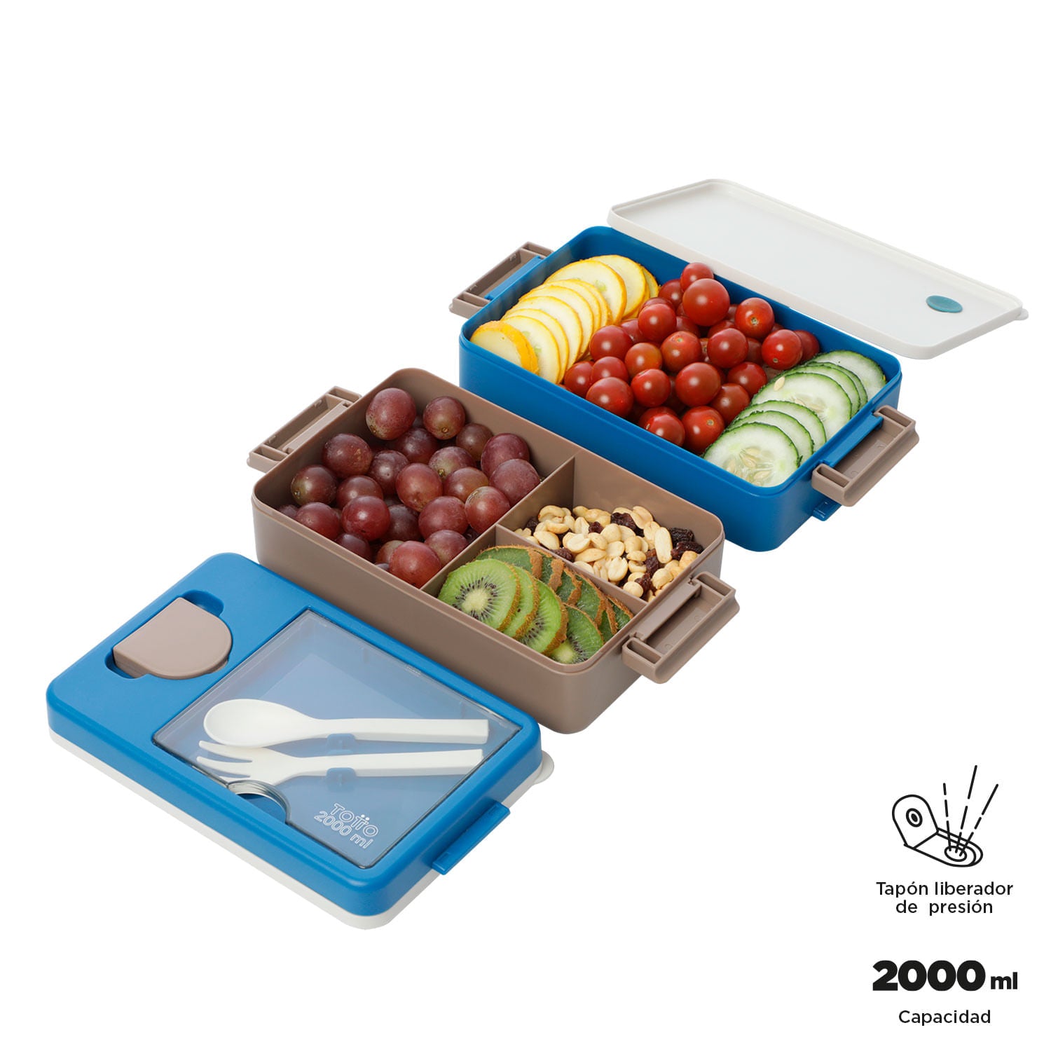 ¡Simplifica tus alimentos con el portacomidas Keiko! Con 2000 ml de capacidad, doble compartimento y separador, es perfecto para llevar un almuerzo completo. Apto para microondas, refrigerador y lavaplatos, este práctico contenedor incluye tenedor, cuchara y un tarrito para salsa. Su tapón liberador de presión garantiza frescura en cada uso. ¡Incorpora el Keiko a tu rutina diaria y disfruta de la máxima conveniencia!